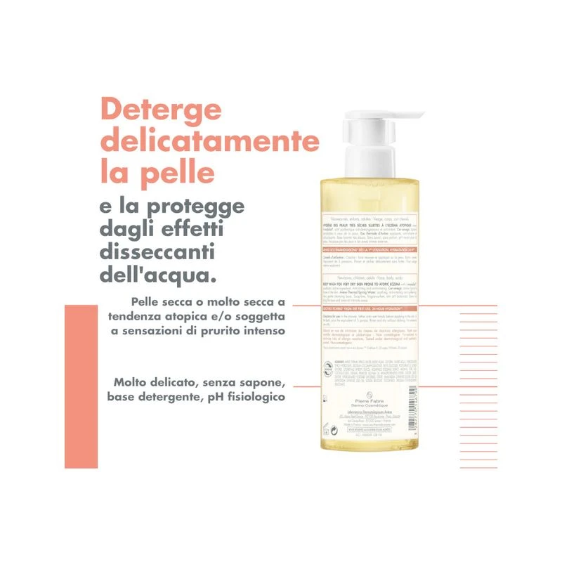 Protegge la pelle molto secca a tendenza atopica e con sensazioni di prurito dagli effetti disidratanti dell’acqua.