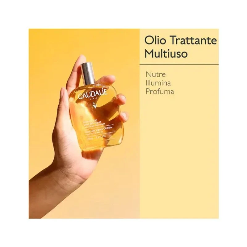 L’Olio Trattante Soleil des Vignes è un olio nutriente per il corpo. Arricchito con olio di argan, di karité, di vinaccioli d’uva e di mandorla, migliora l’elasticità della pelle, illuminandola istantaneamente.