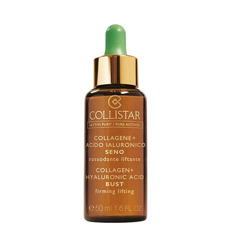 Da Collistar la nuova frontiera della ricerca dermo-cosmetica per la bellezza del seno. Collagene + Acido Ialuronico: due preziosi principi attivi utilizzati in medicina estetica proposti nella loro forma più pura e nella concentrazione ottimale per garantire, massima efficacia, azione mirata, elevata sicurezza. Bastano poche gocce al giorno per risultati rapidi, sicuri, duraturi.