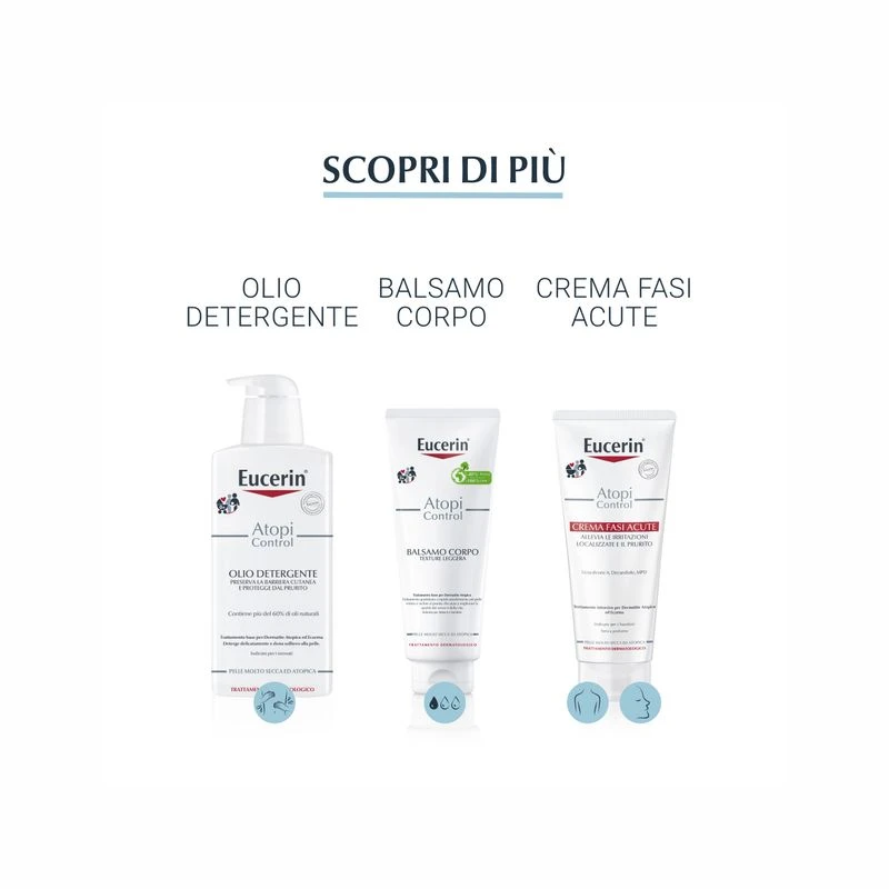 Quando inizia la fase acuta, Eucerin AtopiControl Crema Viso dovrebbe essere usata come trattamento aggiuntivo a Eucerin AtopiControl Crema Fasi Acute.