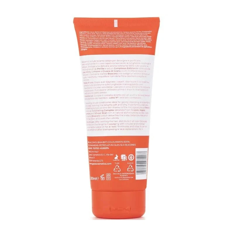 -è un balsamo lavante dalla consistenza morbida e compatta in grado di purificare ed esfoliare il cuoio capelluto senza irritare o aggredire la cute;