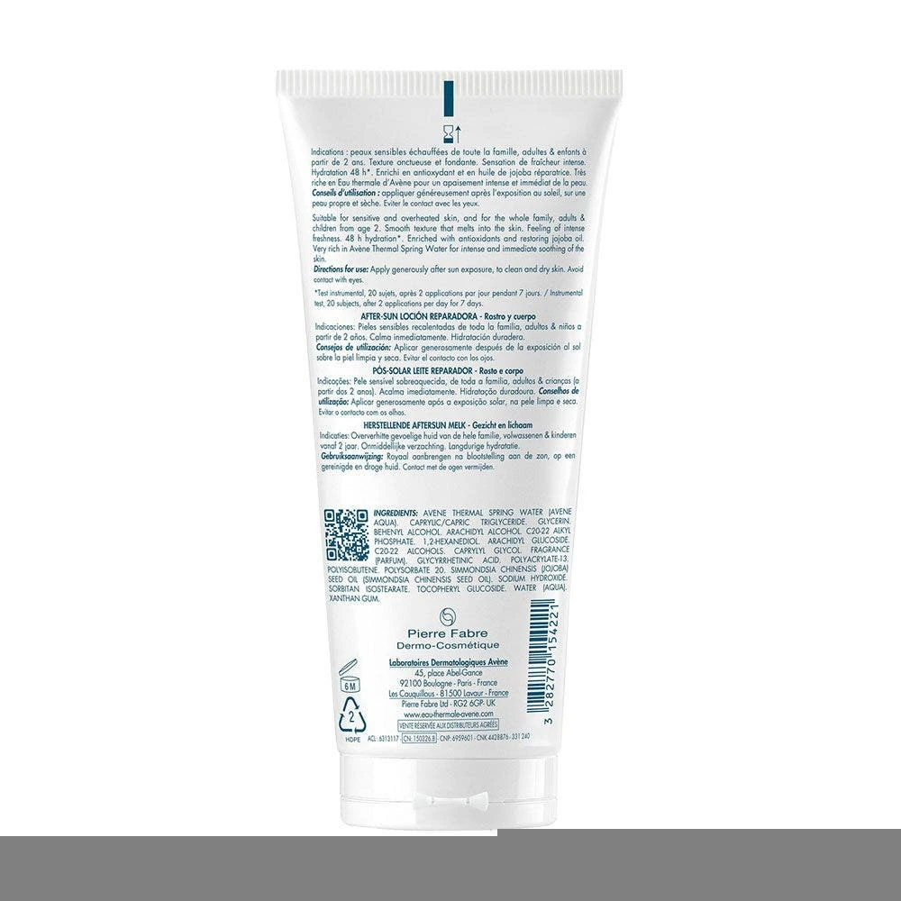 Il latte doposole grazie alla sua formula ricca di Acqua Termale Avène, antiossidanti e olio di jojoba riparatore, lenisce istantaneamente la pelle sensibile accaldata dopo l’esposizione al sole.