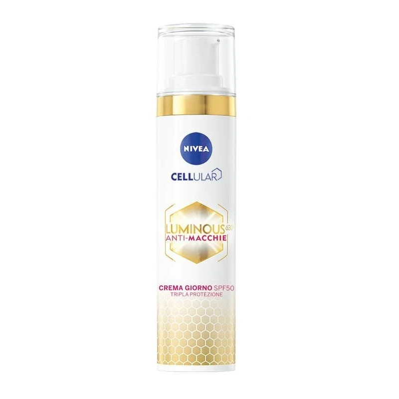 CELLULAR LUMINOUS630® ANTI-MACCHIE Crema Giorno SPF50 Tripla Protezione combina l’ingrediente brevettato LUMINOUS 630® con una protezione extra: Acido Ialuronico, Vitamina E e filtri UVA/UVB.