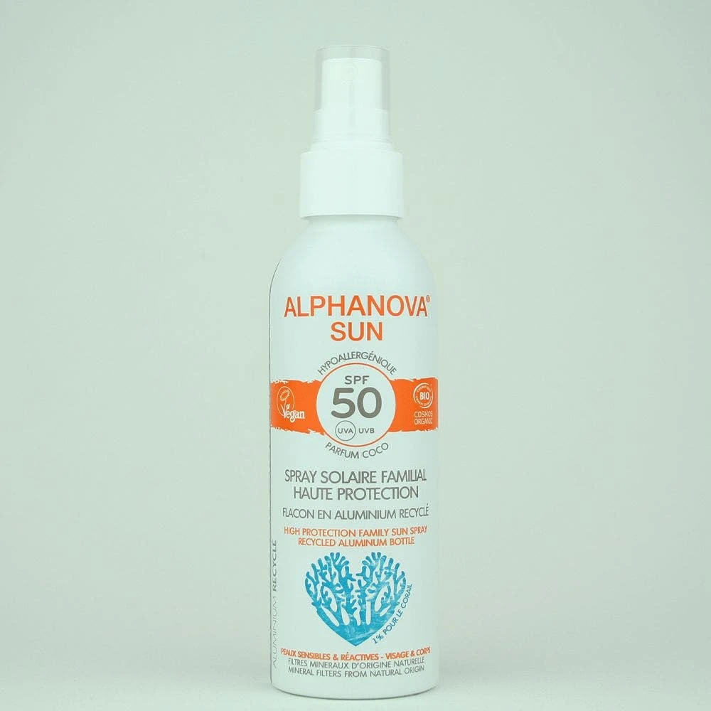 Scoprite il nuovo spray solare per famiglie ALPHANOVA SUN®. Questa novità della gamma si distingue per due aspetti. In primo luogo, grazie a un flacone molto più ecologico realizzato in alluminio riciclato e riciclabile, che riduce del 70% la quantità di plastica utilizzata per un flacone di queste dimensioni.