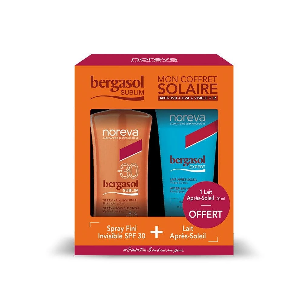 Grazie alla combinazione di filtri UV ad ampio spettro e di antiossidanti attivi, Bergasol Sublim Finitura Invisibile Spray SPF30 offre una protezione rafforzata contro i danni del Sole e regala un’abbronzatura sublimata e duratura. La pelle è protetta da tutti i raggi solari e conserva la sua compattezza ed elasticità. Texture cremosa, priva di oli e resistente all’acqua. È accompagnata da una lozione doposole per idratare e lenire la pelle dopo l’esposizione al sole. Insieme, questi due prodotti creano una routine di trattamento ottimale per un’abbronzatura perfetta e duratura